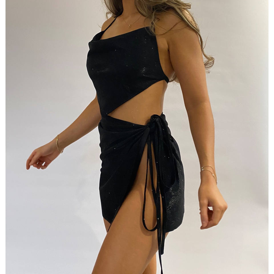Black Sparkle Cow Neck Backless Triangle Top Pea Street
