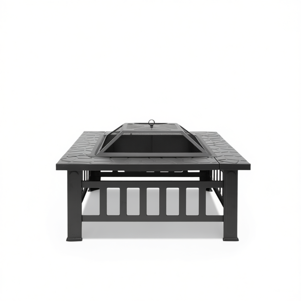 Braciere Quadrato in Metallo Nero con Paletta per Uso in Cortile, Riscaldatore Esterno Moderno Portatile a Legna