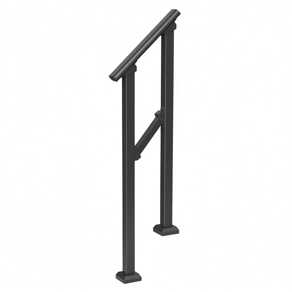 Black Square Tube Steel Handrails For Outdoor Stair Parts Industrial Design Style