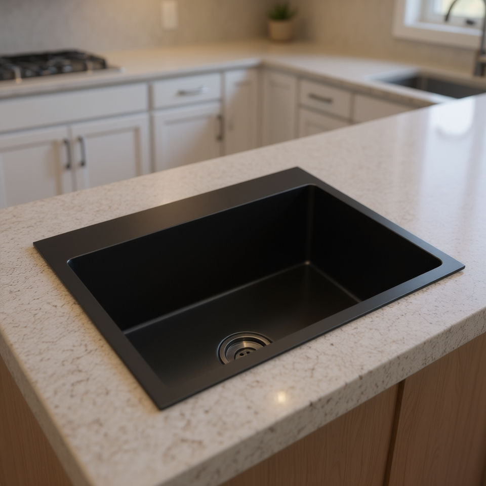 Lavello da Cucina in Acciaio Inox Nero, Vasca Singola Rettangolare da Incasso, Finitura Opaca, Facile da Pulire