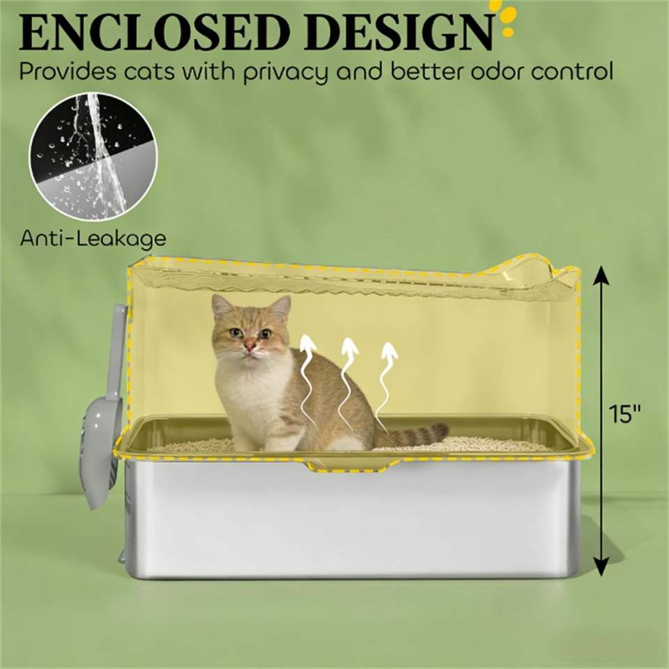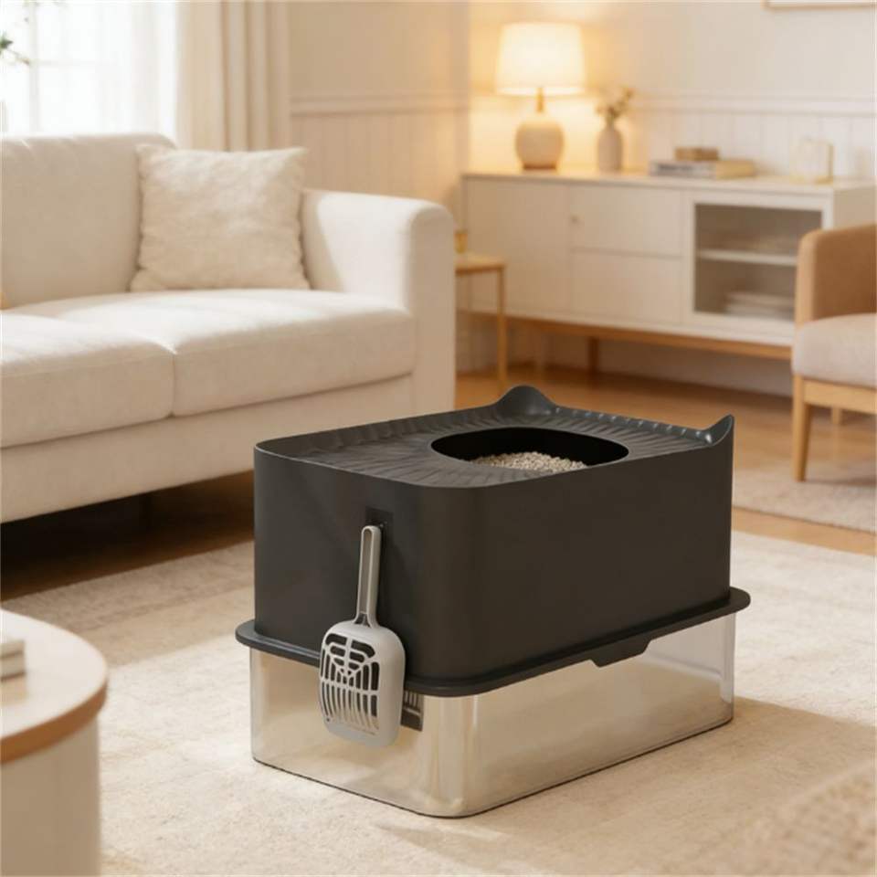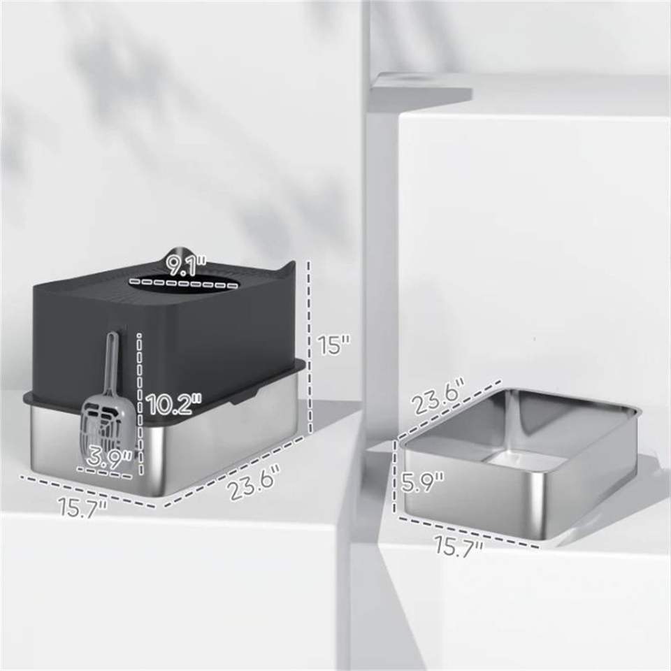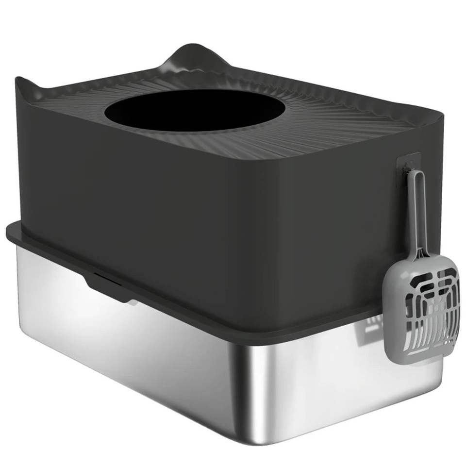 Cestino per Rifiuti in Acciaio Inossidabile Nero, Lettiera per Gatti e Accessori