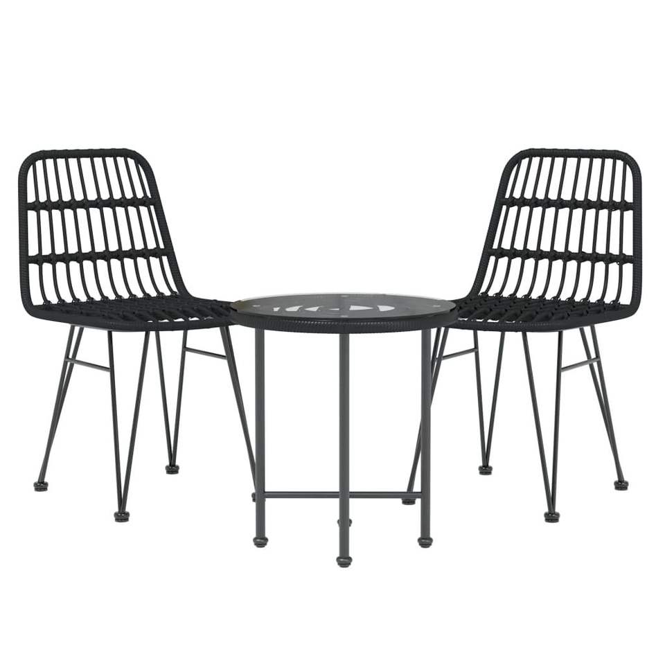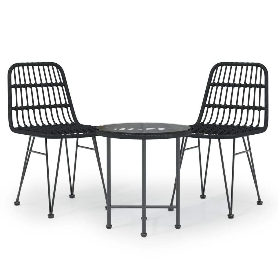 Black Steel Garden Dining Set with Polyethylene and Rattan Look Patio Furniture