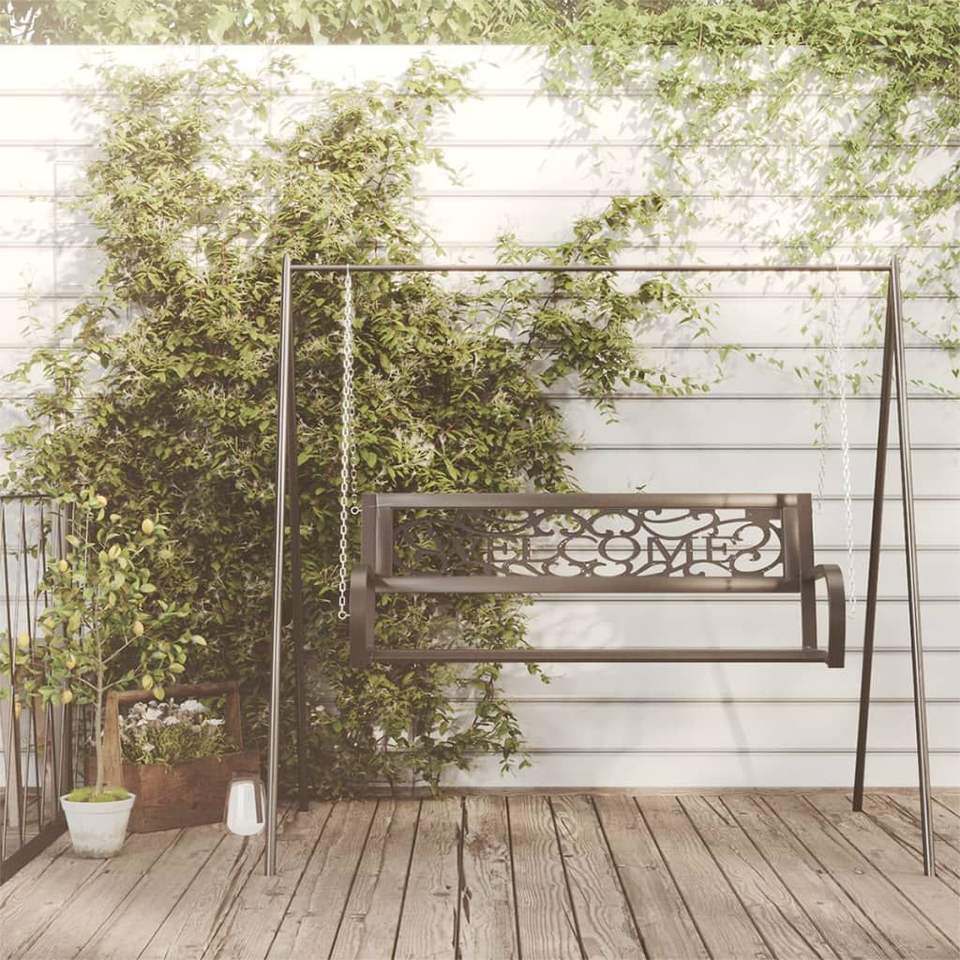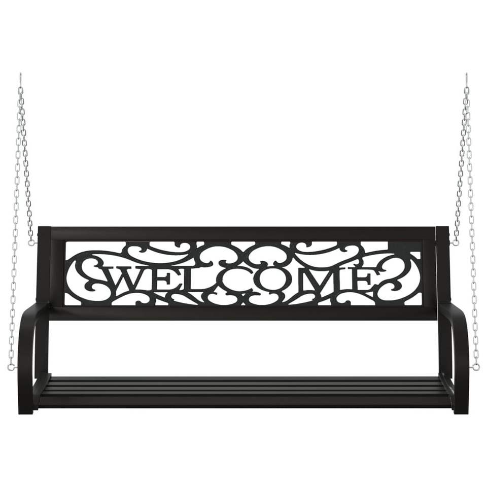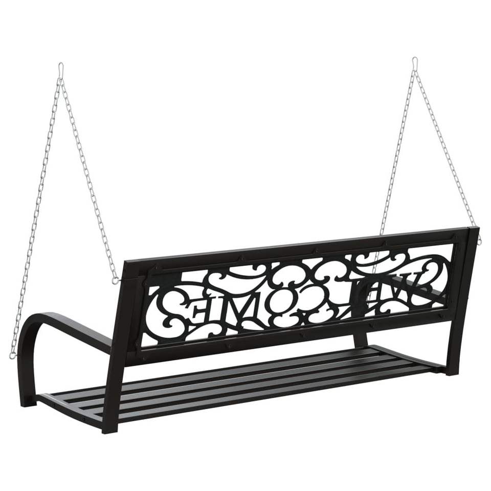 Black Steel Garden Swing Bench with Plastic Medium Hanging Mount for Patio Use