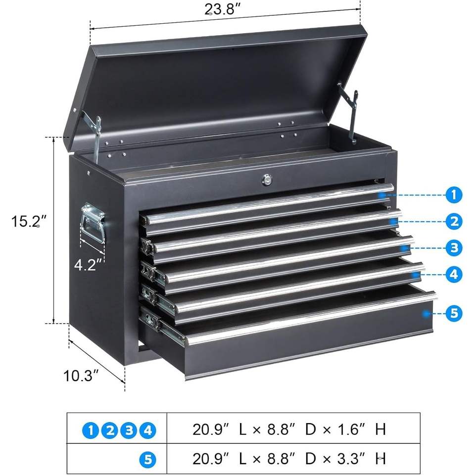 Cassetta degli Attrezzi in Acciaio Nero Resistente per Riparazioni Domestiche e Auto, Organizzatore Portatile in Metallo con Manico Durevole