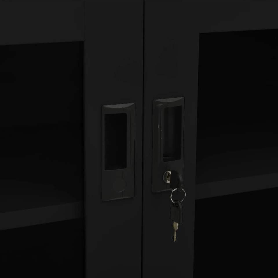 Armadio da Ufficio Medio in Acciaio Nero, Armadietti Rettangolari per Archiviazione Ufficio