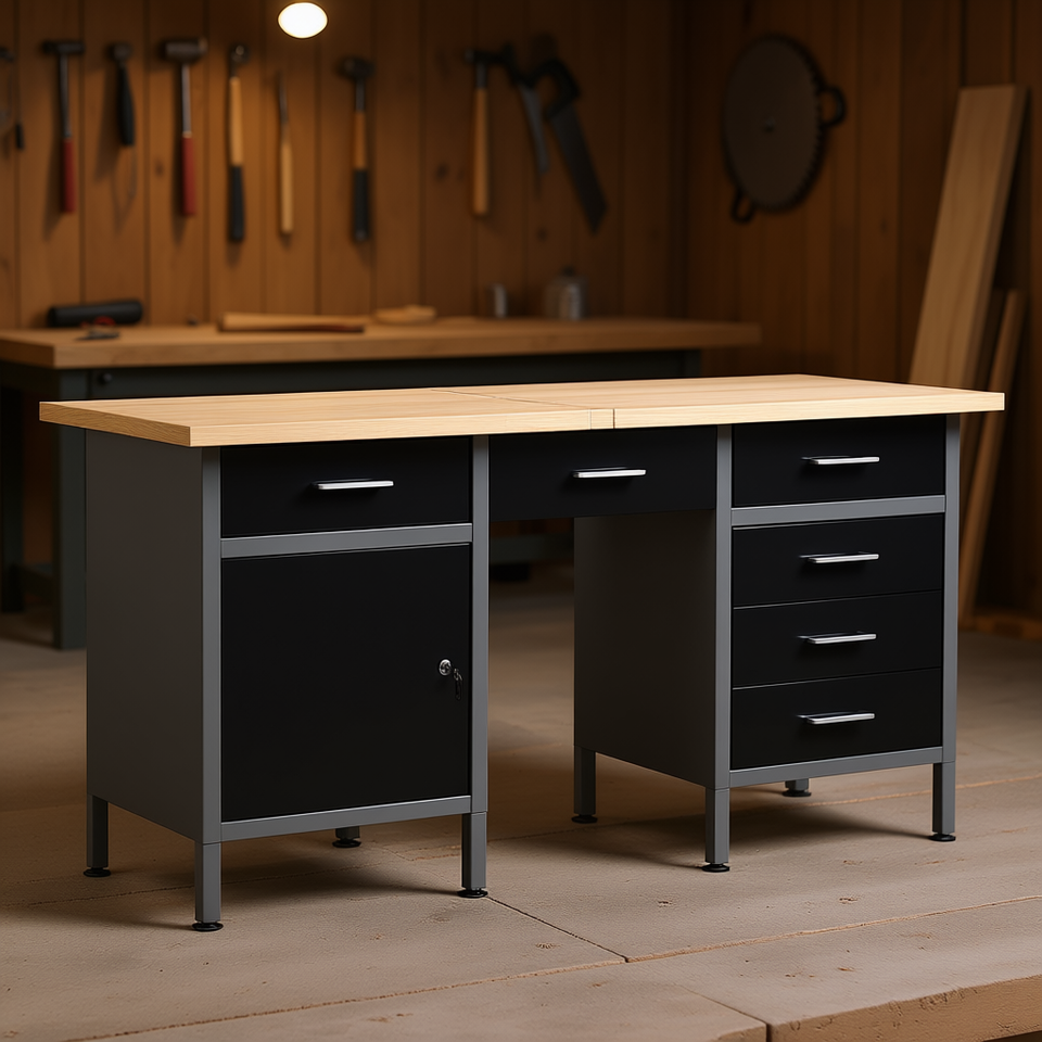 Black Steel Workbench 63x23.6x33.5 Woodworking Bench High Rigidity Industrial Use