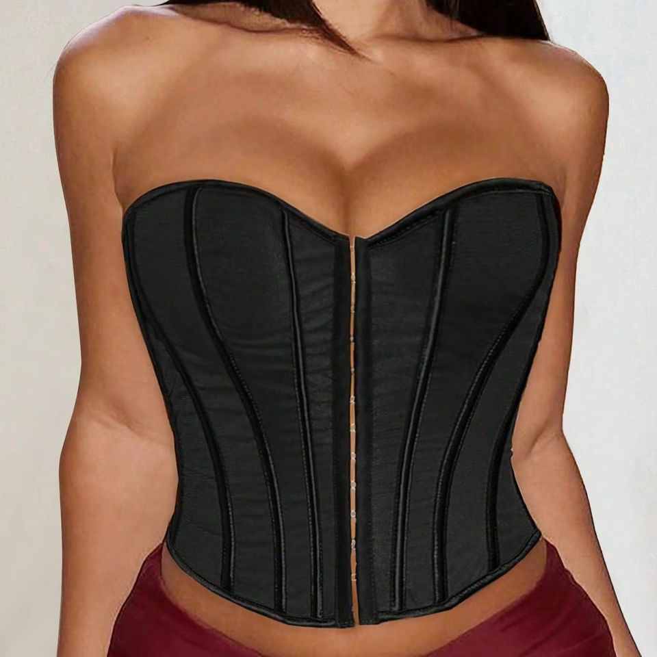 Top Corsetto Nero Senza Spalline con Zip per Donne, Modellante per la Vita, Slimming, Stile Audace e Trendy