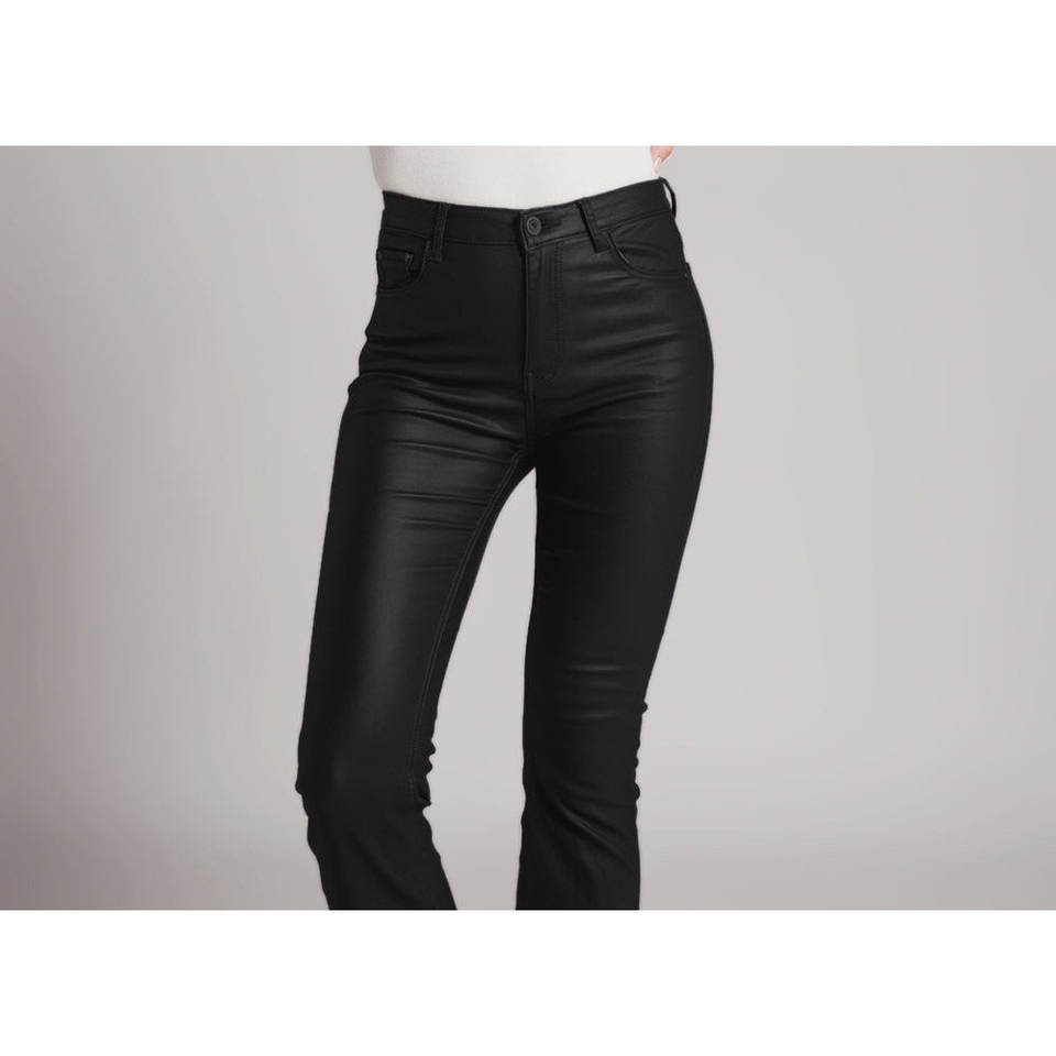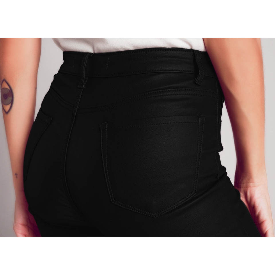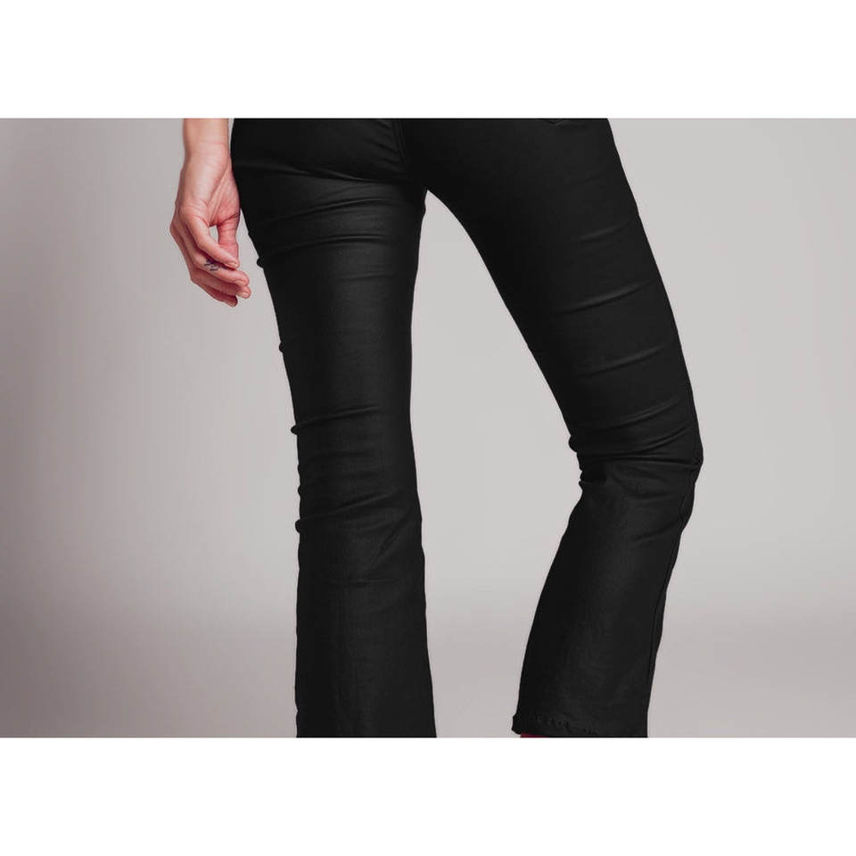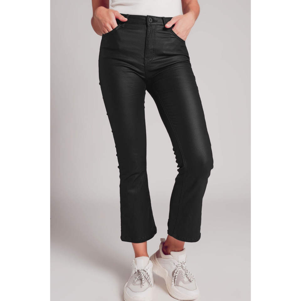 Black Stretch Faux Leather Flare Pants Breathable High-Waisted Casual Mid-Waist Fit Pencil Cargo Wrinkled Belt Loops Five