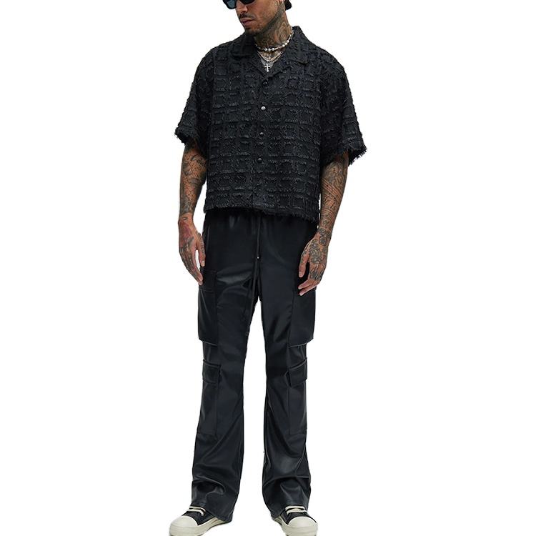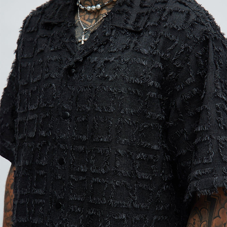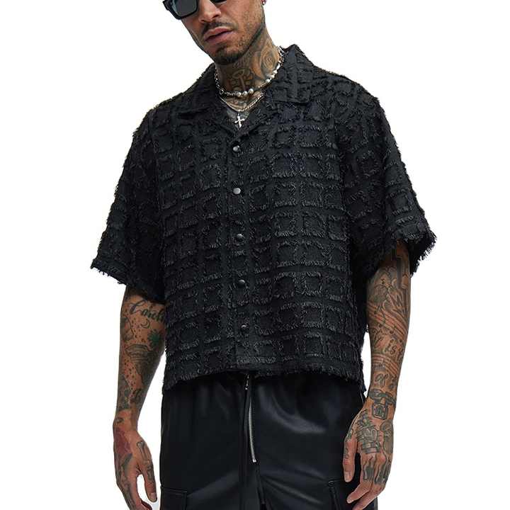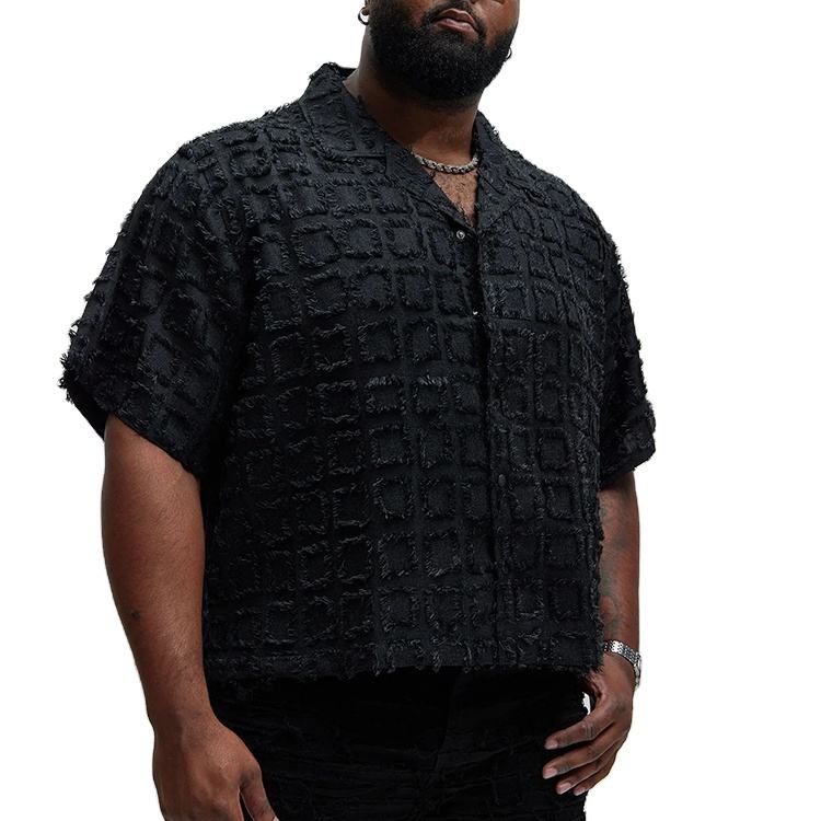 Camicia Estiva Nera a Quadri per Uomo Taglie Forti, Manica Corta, Vestibilità Ampia, Scollo a V con Bottoni