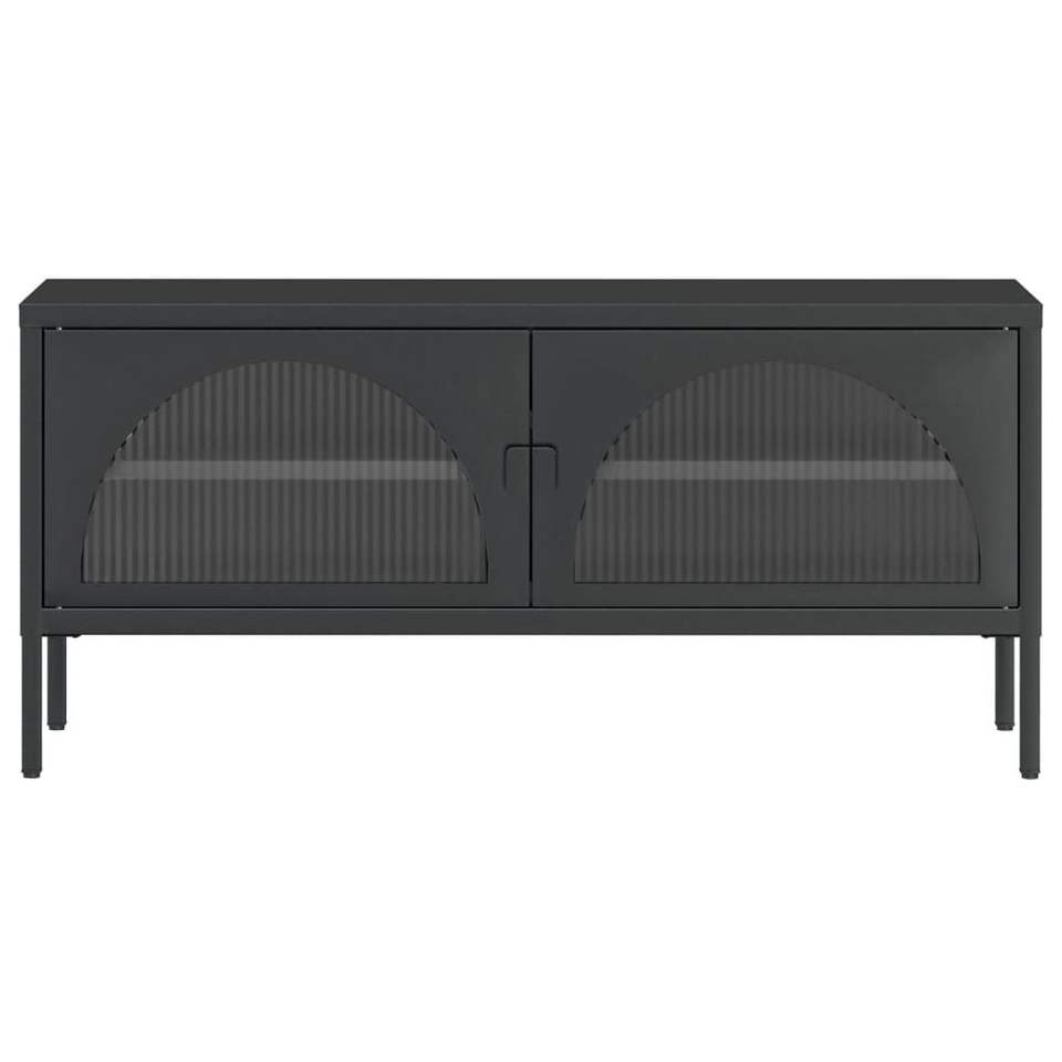 Black TV Stand with Glass & Steel 41.3\"x13.8\"x19.7\" Size
