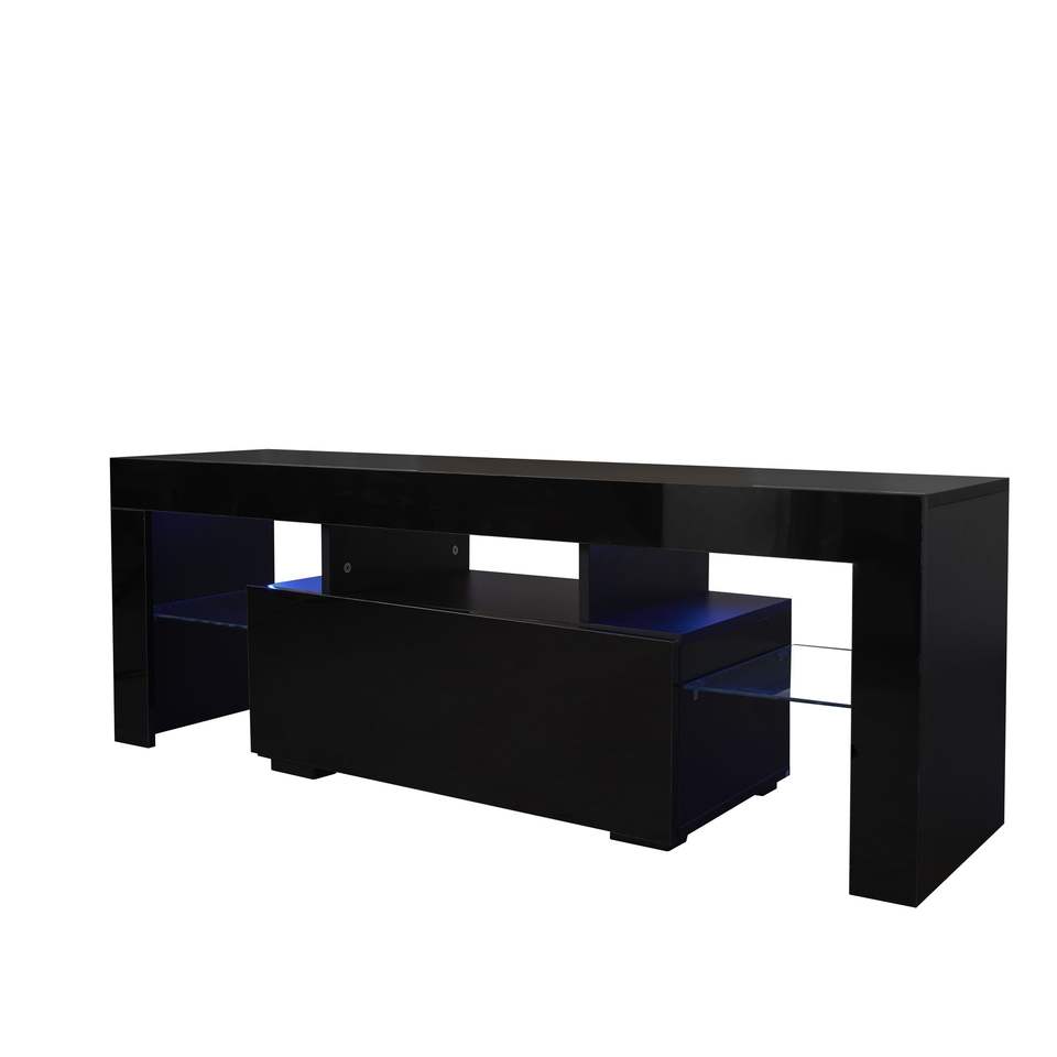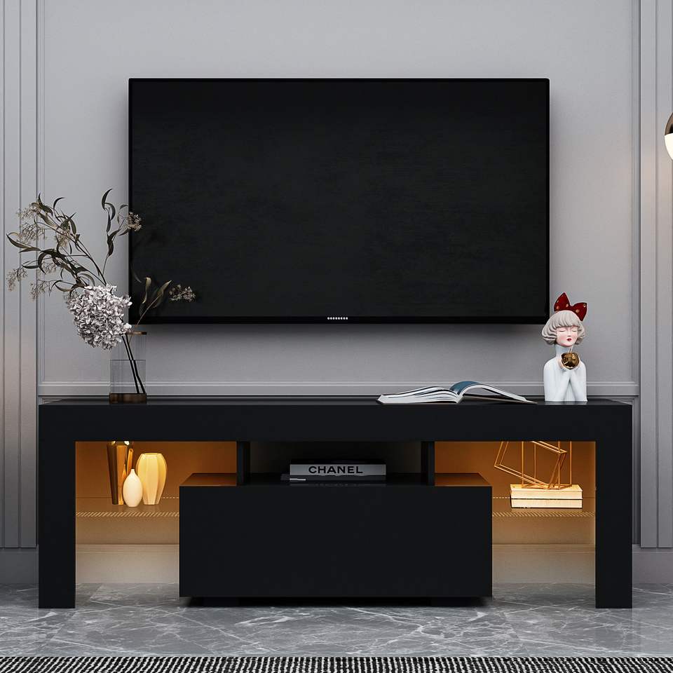 Mobile TV Nero con Luci LED RGB per TV a Schermo Piatto e Console di Gioco, Ideale per Soggiorno, Salotto e Camera da Letto