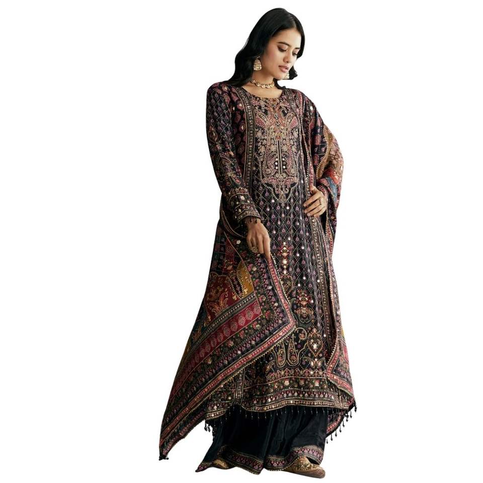Zari nero Tabby seta ricamato Kurta Palazzo vestito con stampa Dupatta all'ingrosso donna abbigliamento etnico OEM fabbrica alla rinfusa