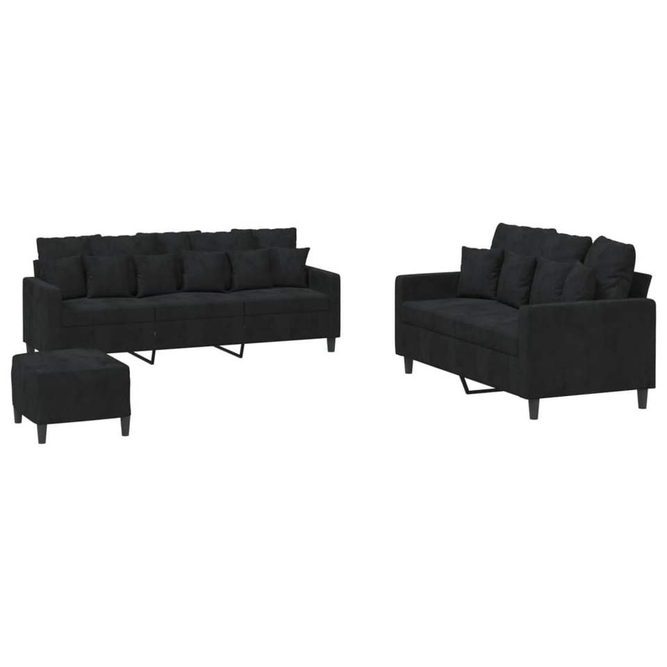 Set Divano in Velluto Nero 100% Poliestere per Soggiorno con Dettagli in Metallo, Textilene e Compensato