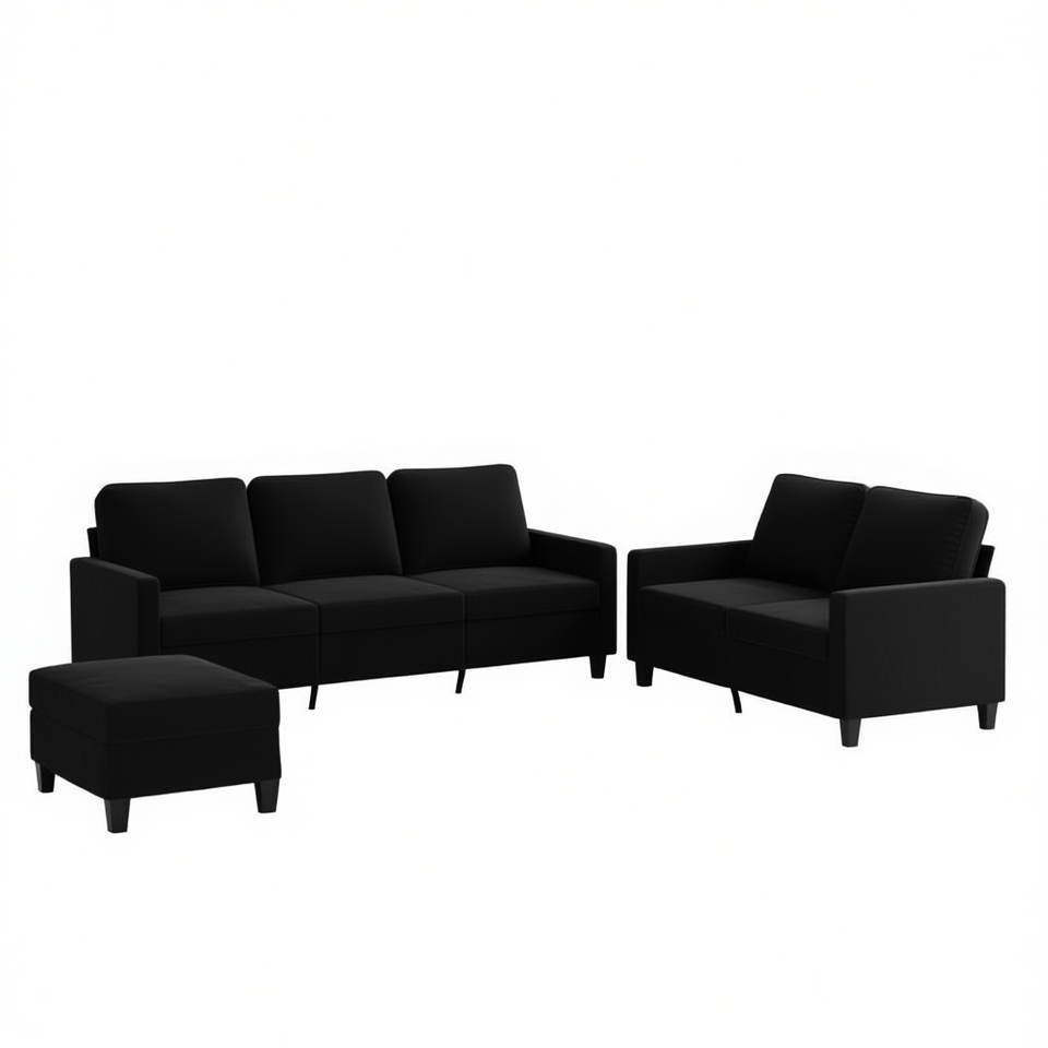 Set Divano in Velluto Nero 100% Poliestere Arredamento Contemporaneo Moderno per Soggiorno