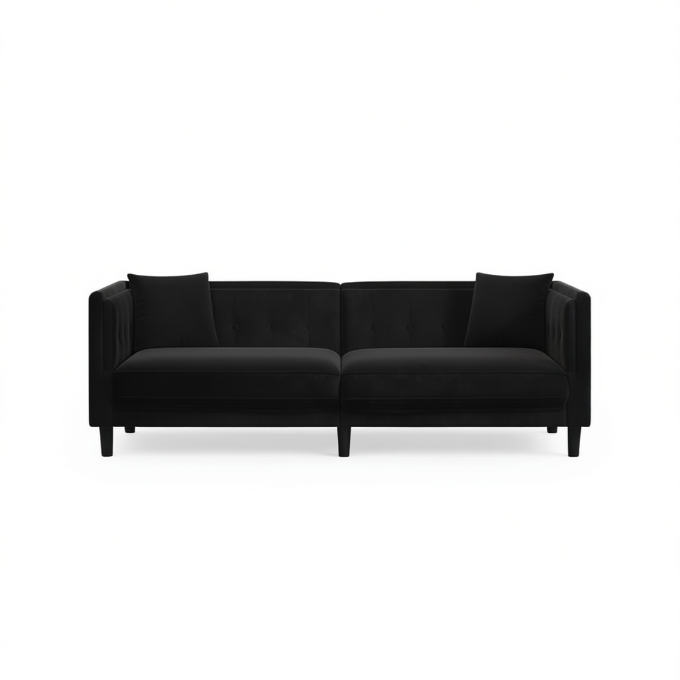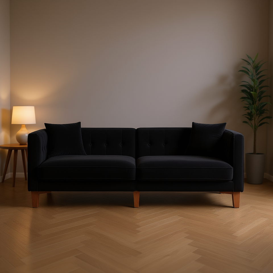 Divano a 3 Posti in Velluto Nero con Struttura in Legno Massello, Moderno Divano Imbottito per Soggiorno