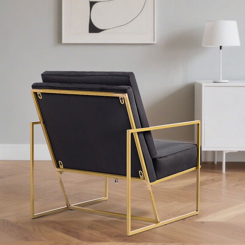 Black Velvet Accent Chair with Gold Metal Frame Modern Armchair for Living Room Single Lounge Sofa Chair Leisure Chair