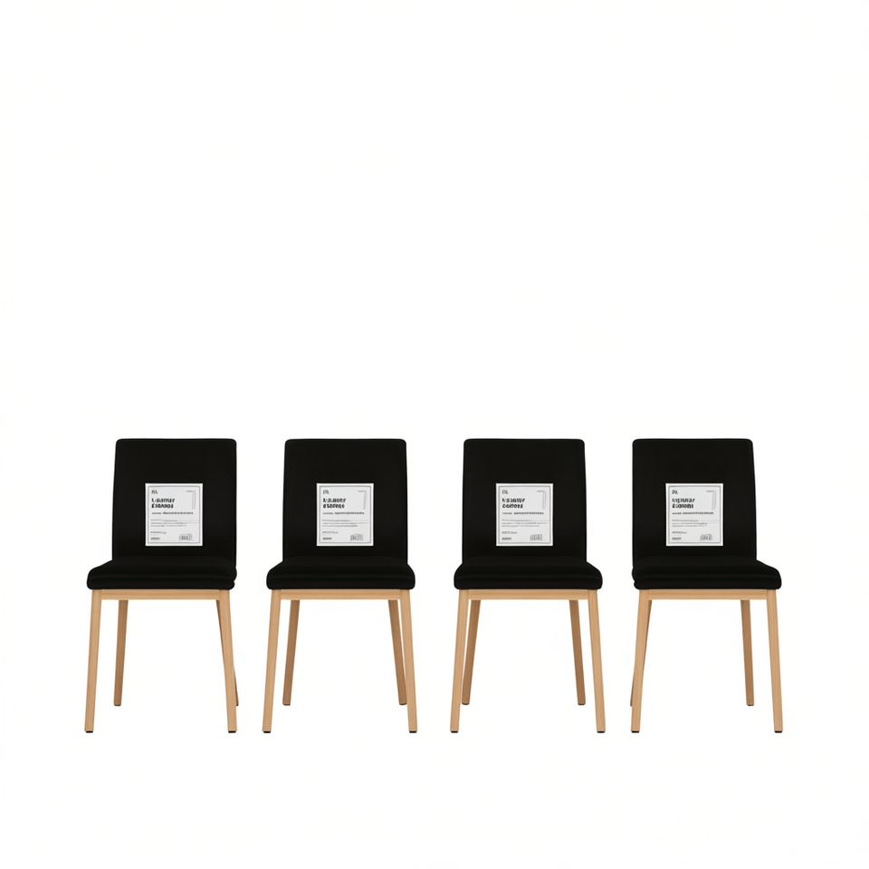 Set di 4 sedie da pranzo in velluto nero, design moderno con gambe in legno, eleganti mobili per la casa
