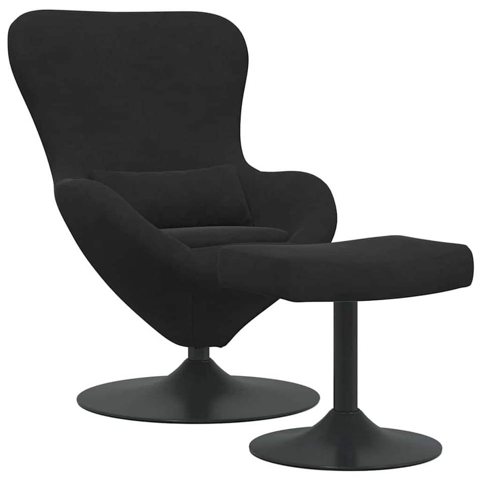 Black Velvet Egg Chair with Footstool Luxurious Chaise Lounge Set