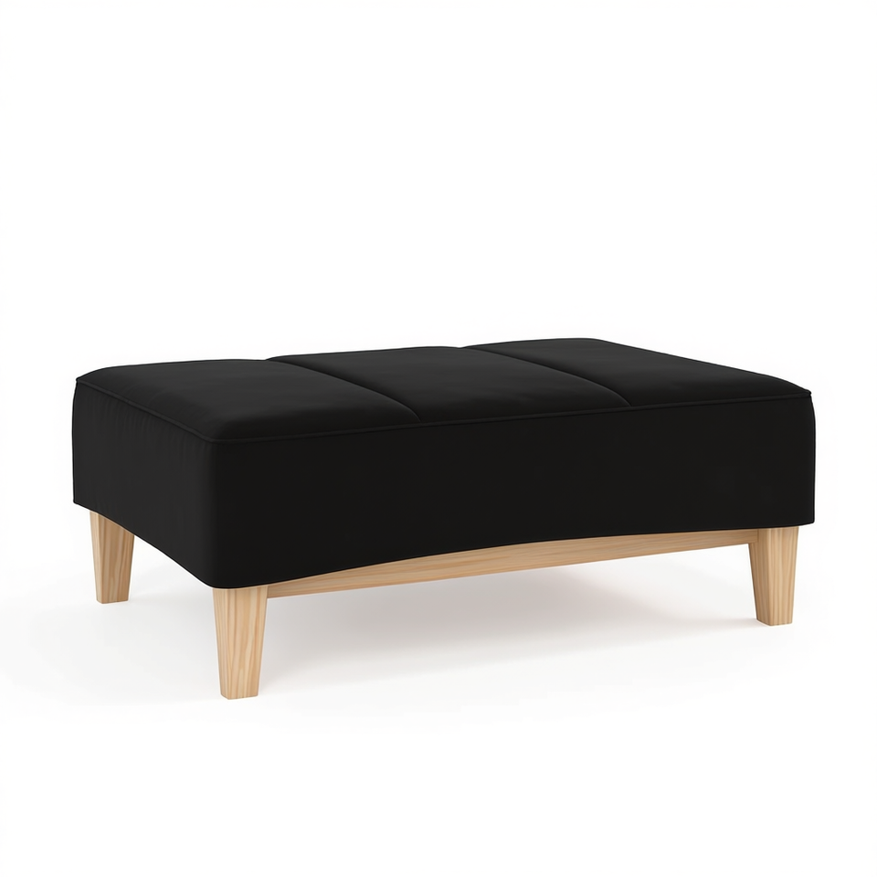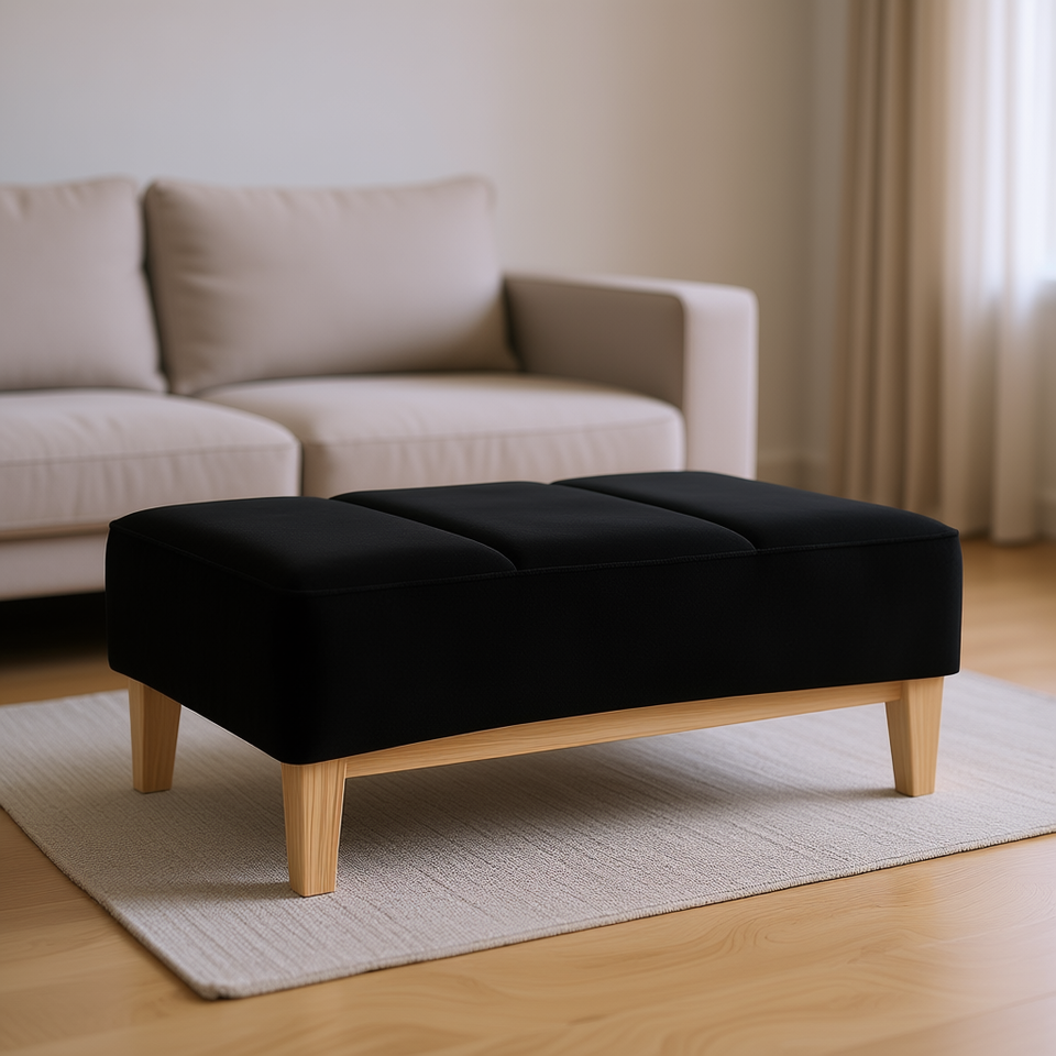 Black Velvet Footstool Medium Size Tufted Midcentury Modern Living Room Furniture