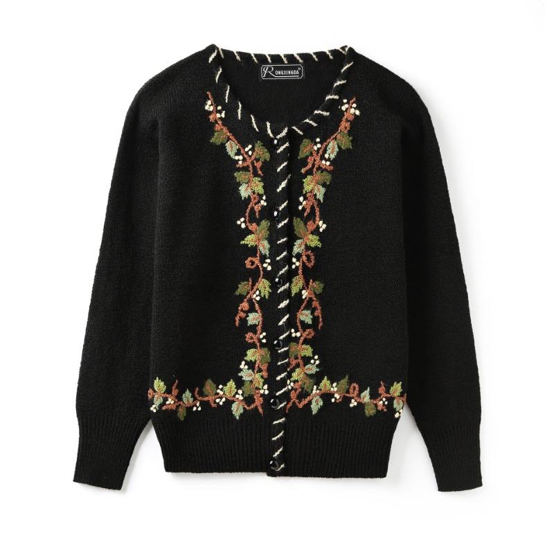 Maglioni Vintage neri lavorati a maglia girocollo lavorata a mano maglione corto oversize Cardigan lavorato a maglia Jacquard da donna