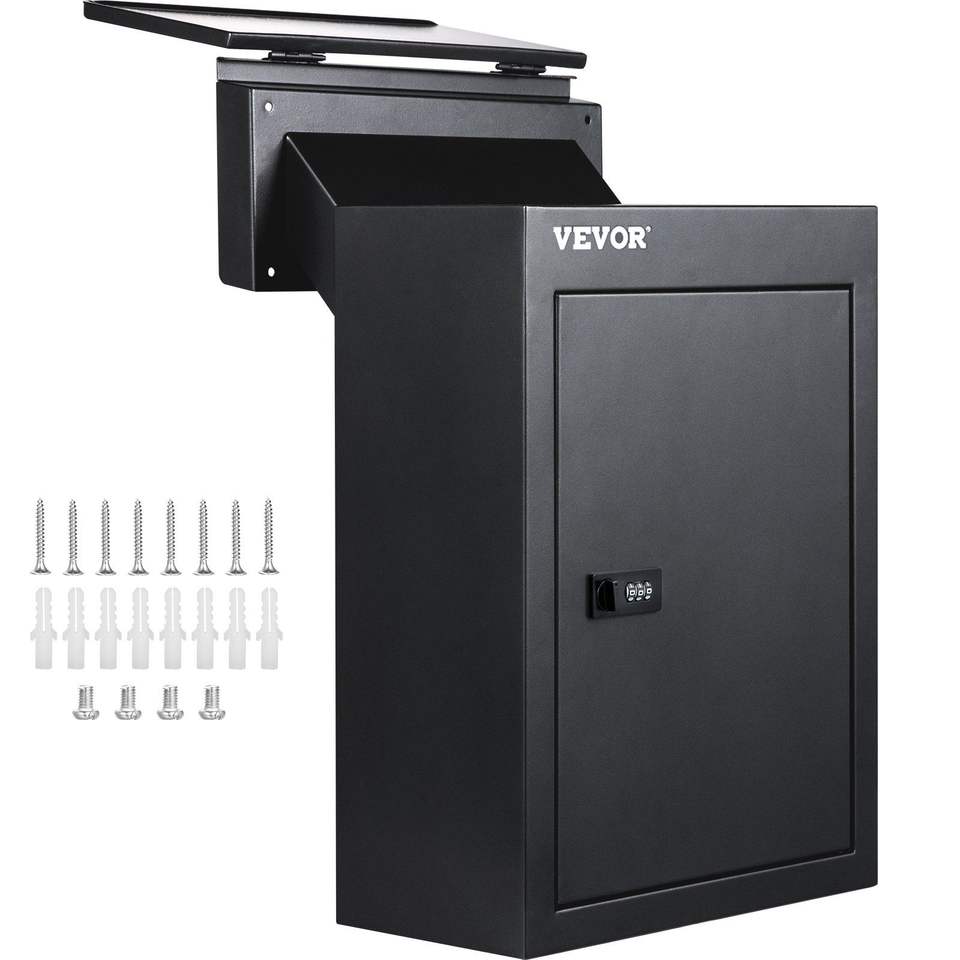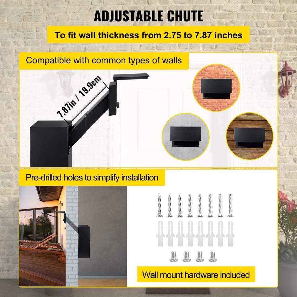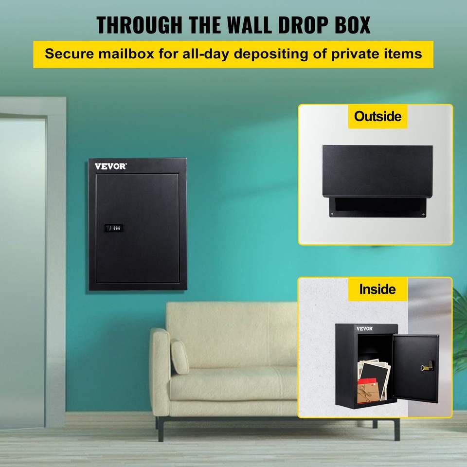 Black Wall Mount Mailbox Letters Rainproof 12.5''x6.3''x16.9'' Drop Box W/Adjustable Chute Code Lock for Rent Home Office Keys