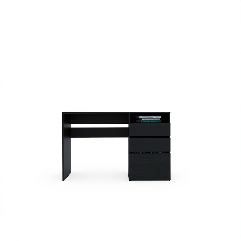 Black Wengue Computer Desk 3 Drawer 1 Shelf Durable Office Furniture Home Office Wood MDF