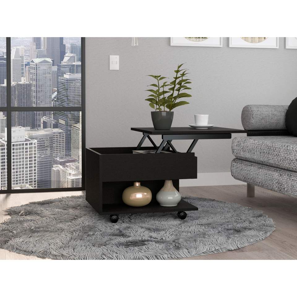 Tavolino da Caffè Sollevabile Nero Wengue con 1 Cassetto e 1 Ripiano