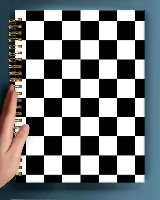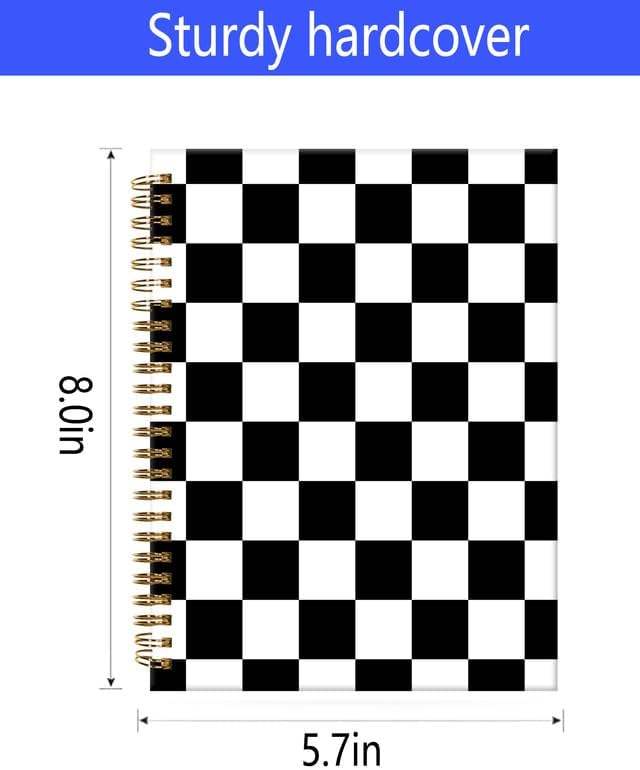 Taccuino per appunti a spirale a scacchi bianco nero A5 con copertina rigida in carta spessa carino per il College
