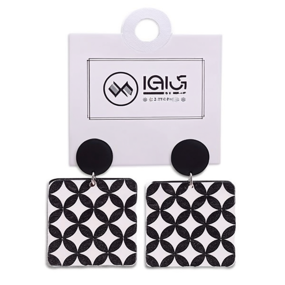 Orecchini pendenti quadrati geometrici bianchi e neri con borchie circolari, gioielli alla moda, 12 pezzi