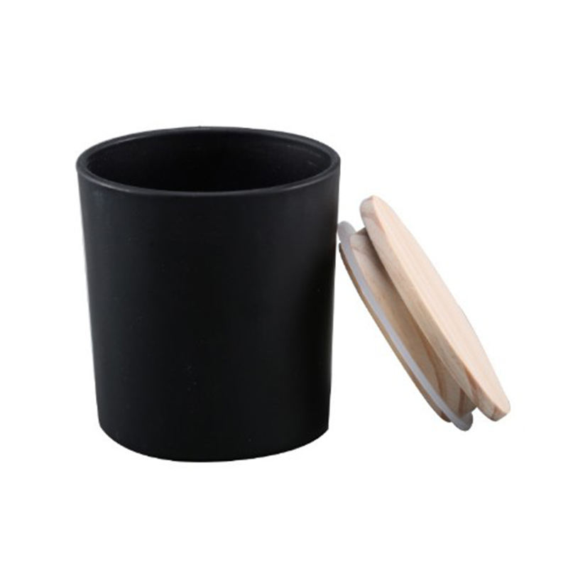 Black White Red Glass Candle Cup with Wooden Lid Customizable Metal Holder for Weddings Printed Logo