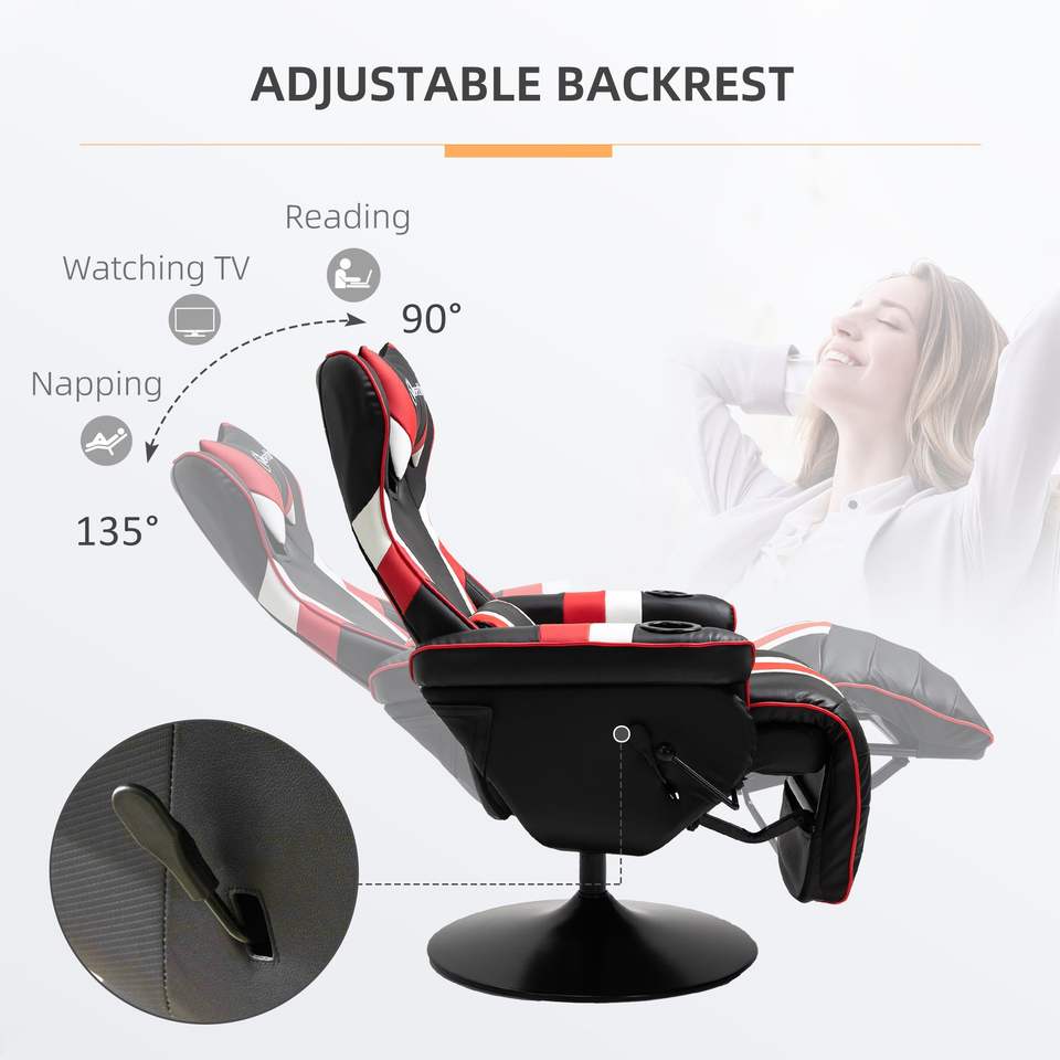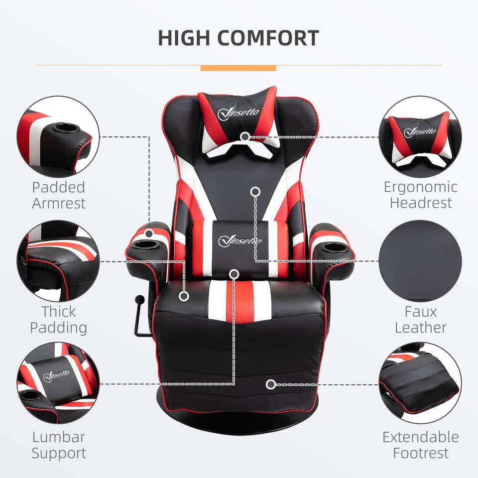 Sedia da Gaming Stile Racing Nera, Bianca e Rossa con Supporto Lombare, Poggiapiedi e Portabicchieri, Reclinabile con Caratteristiche Eleganti
