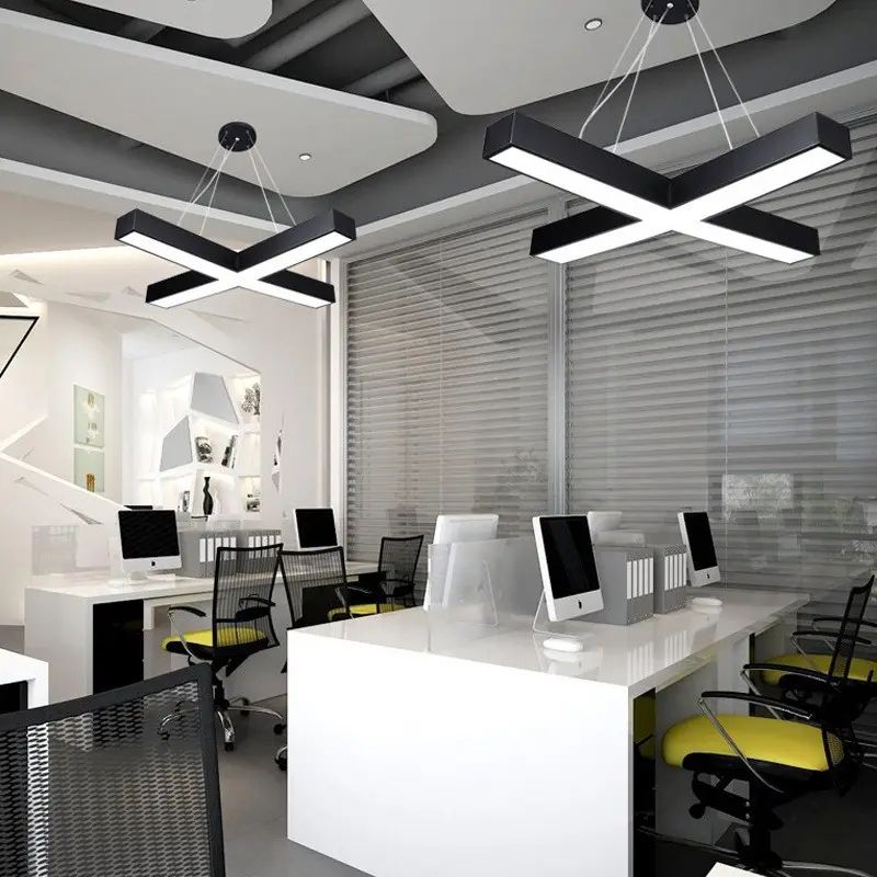 Lampada a sospensione a Led a forma di X bianca nera 36W per ufficio domestico commerciale X forma luce di sospensione per sala studio Fitness Club