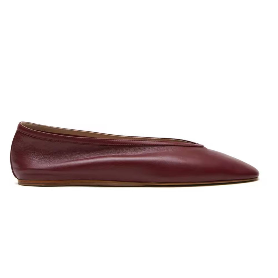 Black Wine Camel Burgundy V Cut Big Size Square Toe Business Leather Ballet Flats Office Shoes for Women Calfskin 45