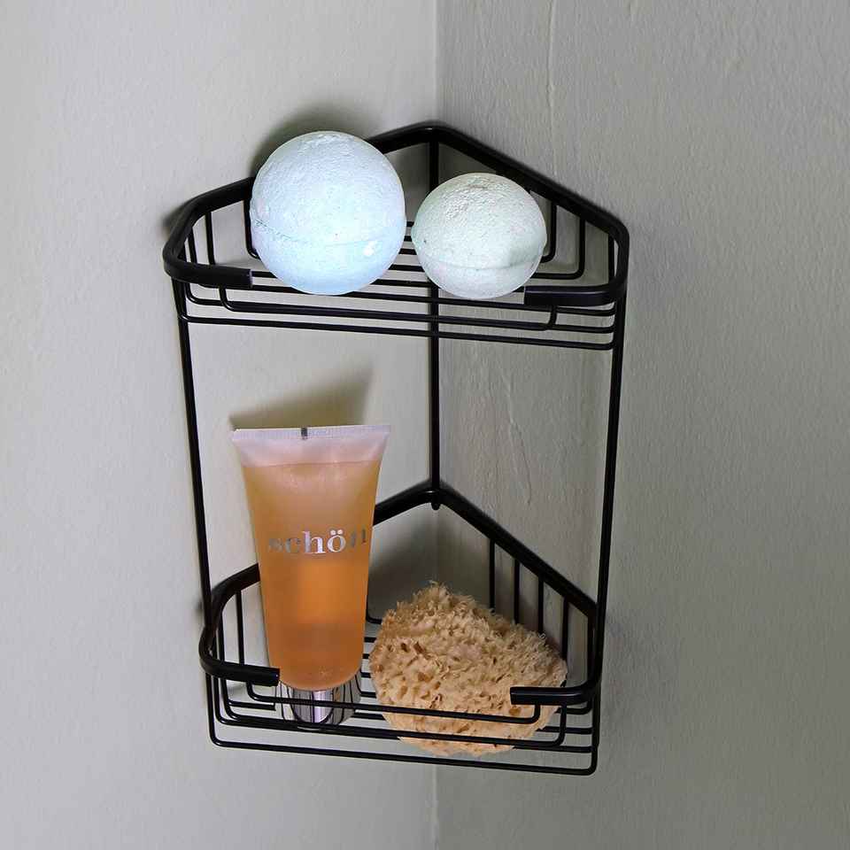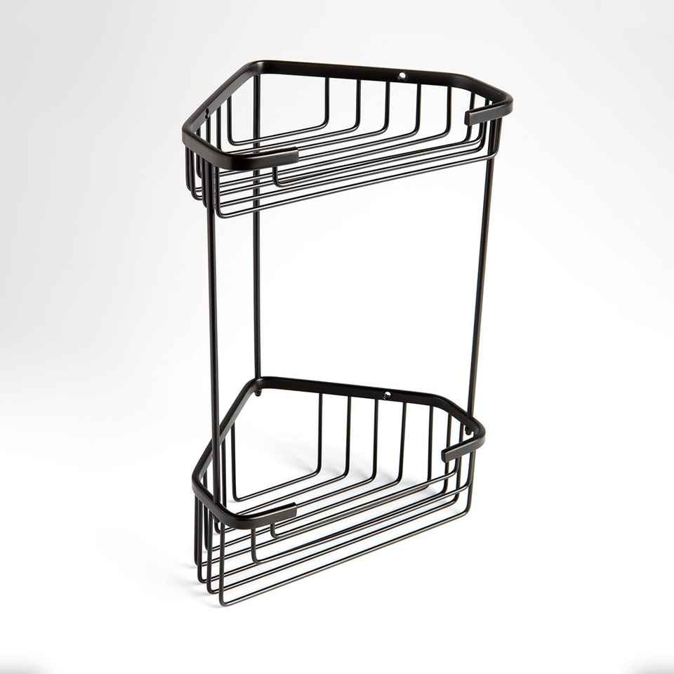 Portasapone Doppio Angolare da Doccia in Acciaio Inossidabile Nero, Mensola da Bagno Montata a Parete