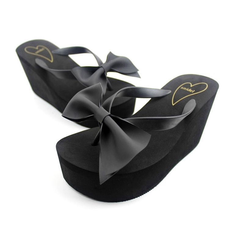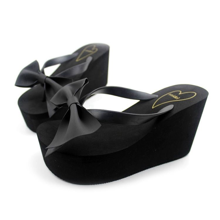 Sandali con Zeppa Neri da Donna, Piattaforma Alta Personalizzata, Ciabatte in PVC con Fiocco, Infradito con Tacco Alto e Fiocco