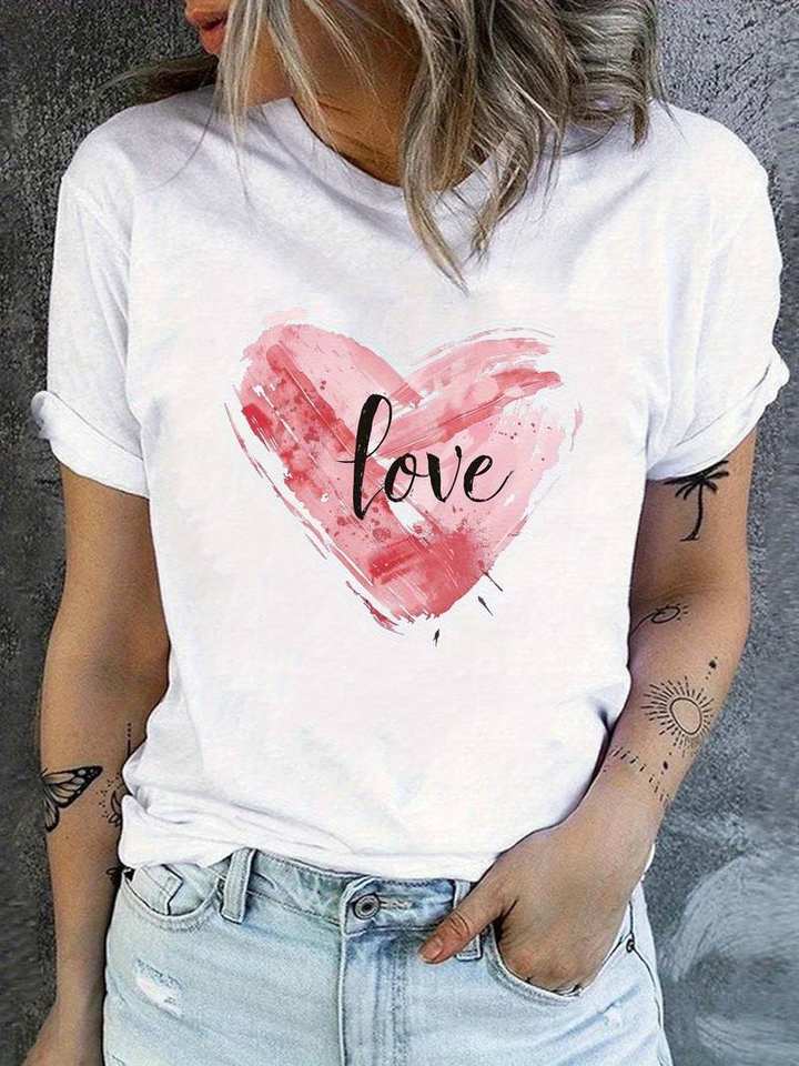 Black Women's T-Shirt Short Sleeve Round Neck Heart Design Casual Summer Top 100% Cotton Jersey Easy to Wash Regular Fit