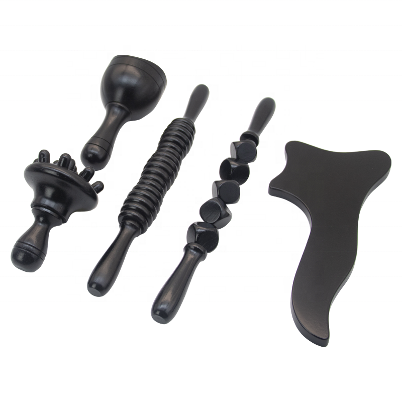 Kit di strumenti per massaggi per terapia del legno nero 5 pezzi strumenti per scolpire il corpo per maderoterapia, massaggiatore in legno per drenaggio linfatico