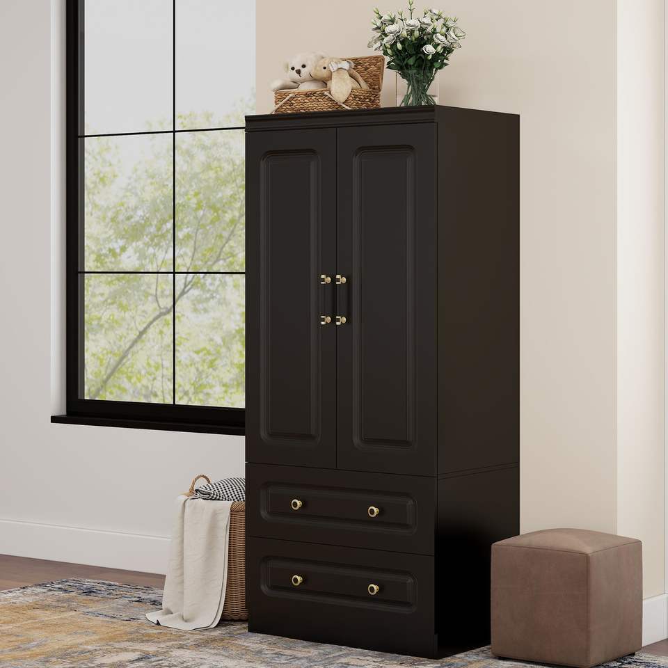 Armadio in legno nero alto armadio-2 ante armadio con asta di sospensione 2 cassetti ripiani