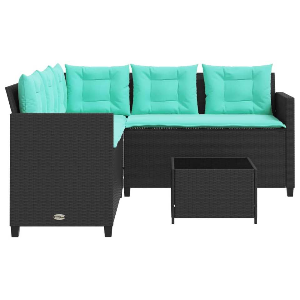 Divano da Esterno in Rattan PE Nero e Blu con Struttura in Acciaio Verniciato a Polvere e Vetro Temperato