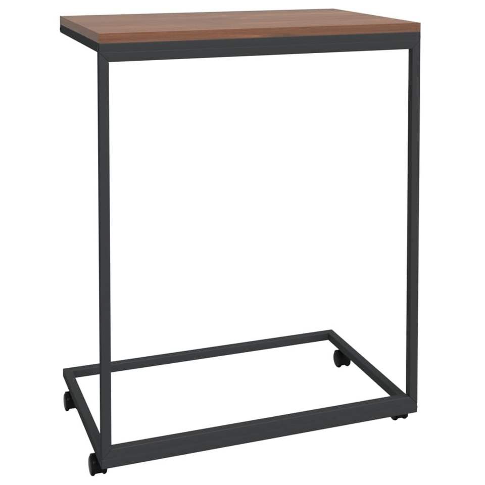 Black and Brown Engineered Wood and Iron Coffee Table with Side Table Feature