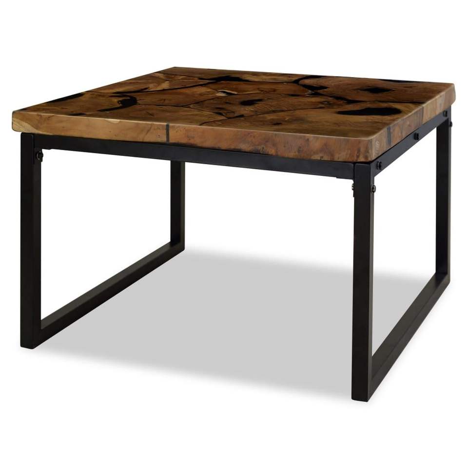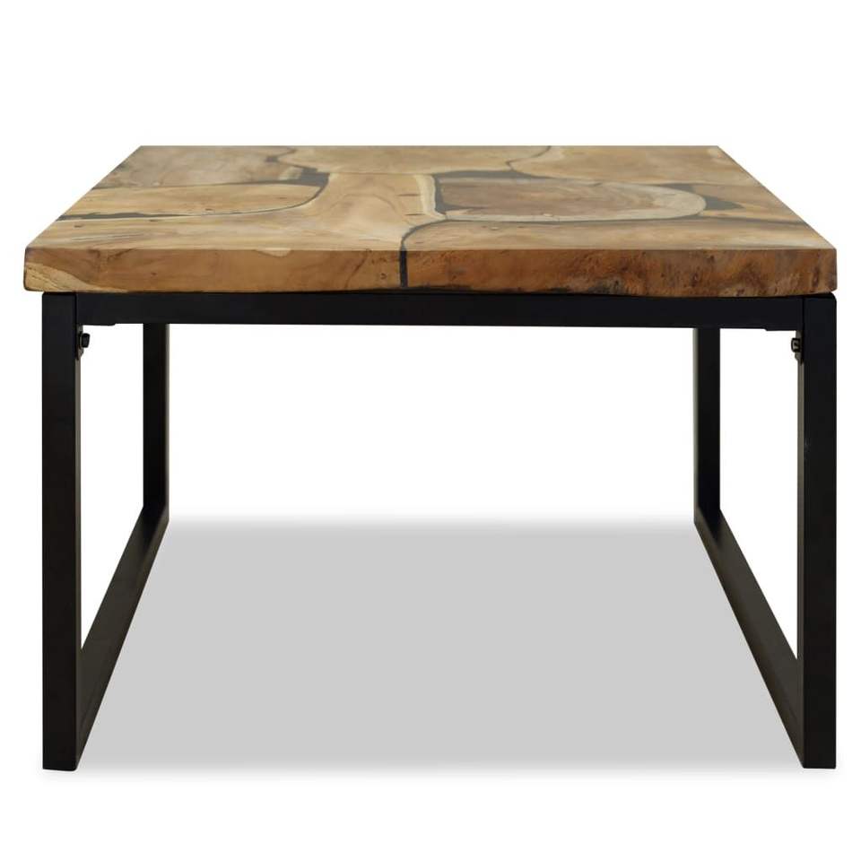 Black and Brown Real Teak Coffee Table with Black Resin Steel Elegant Design for Home Decor