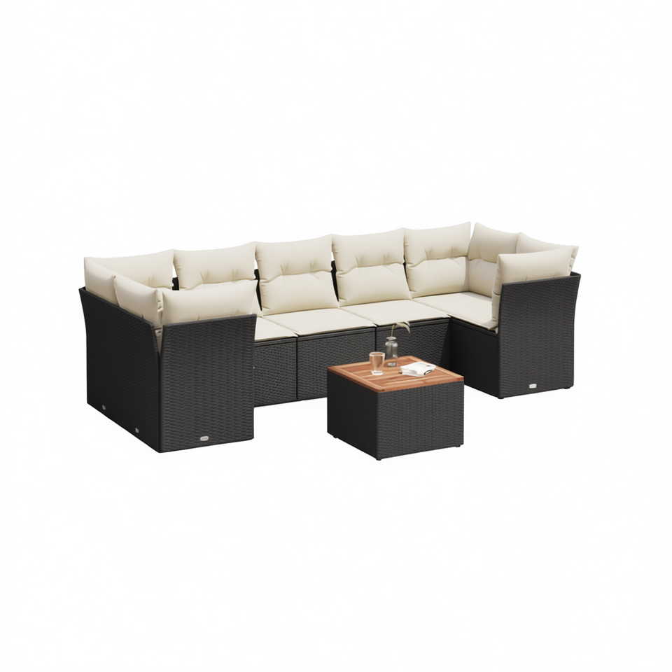 Set Divano da Giardino Nero e Crema con Cuscini, 6 Posti, in Rattan, Arredamento da Esterno dal Design Contemporaneo