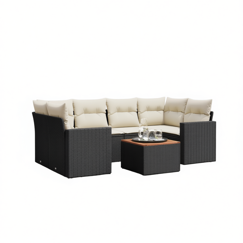 Set Divano da Giardino Nero e Crema in Rattan PE, Arredamento da Esterno Impermeabile dal Design Contemporaneo
