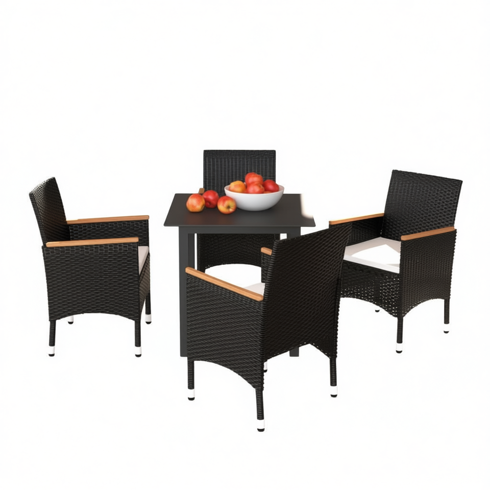 Set da Pranzo da Giardino in Rattan Nero per 4 Persone, Resistente alle Intemperie, Arredamento da Esterno in Stile Contemporaneo