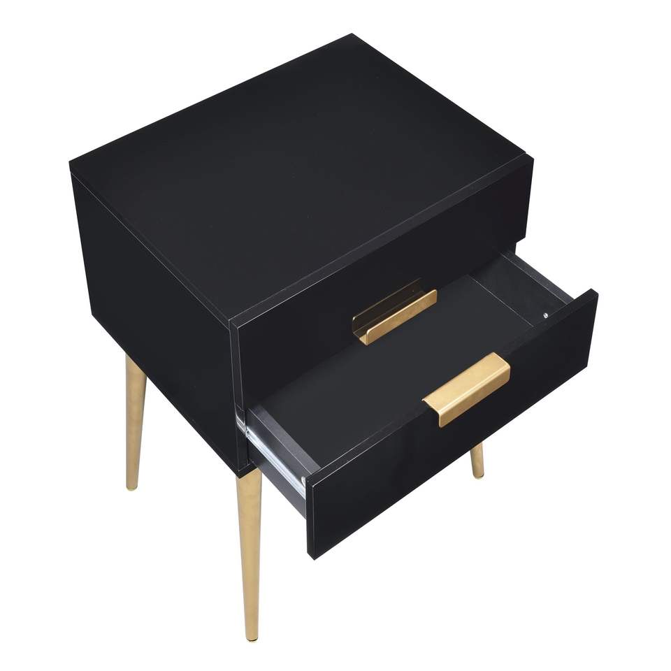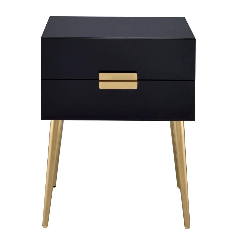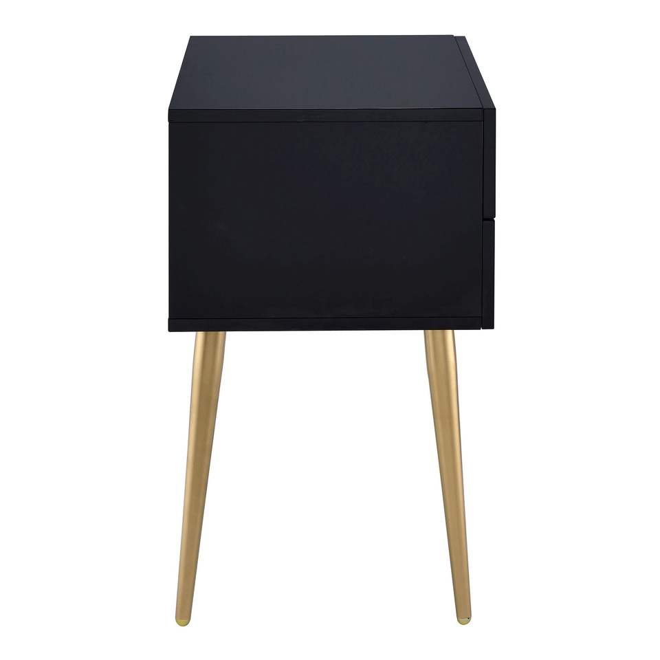 Comodino Nero e Oro a 2 Cassetti, Elegante Tavolino Laterale con Pratica Soluzione di Archiviazione