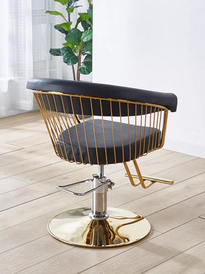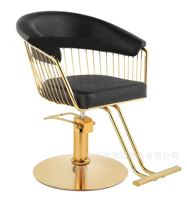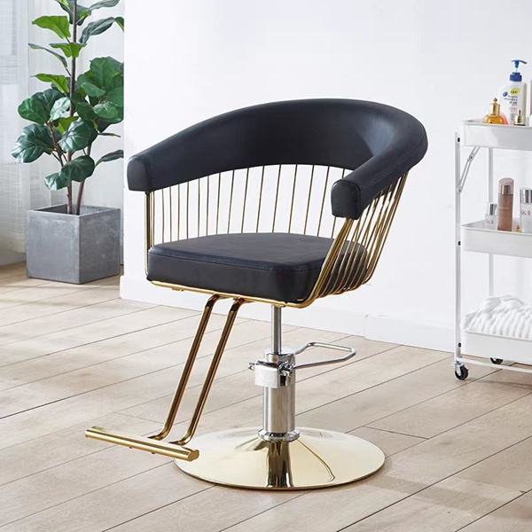 Black and Gold Reclining Barber Stylist Chair Synthetic Leather Salon Furniture for Beauty Salons and Barber Shops