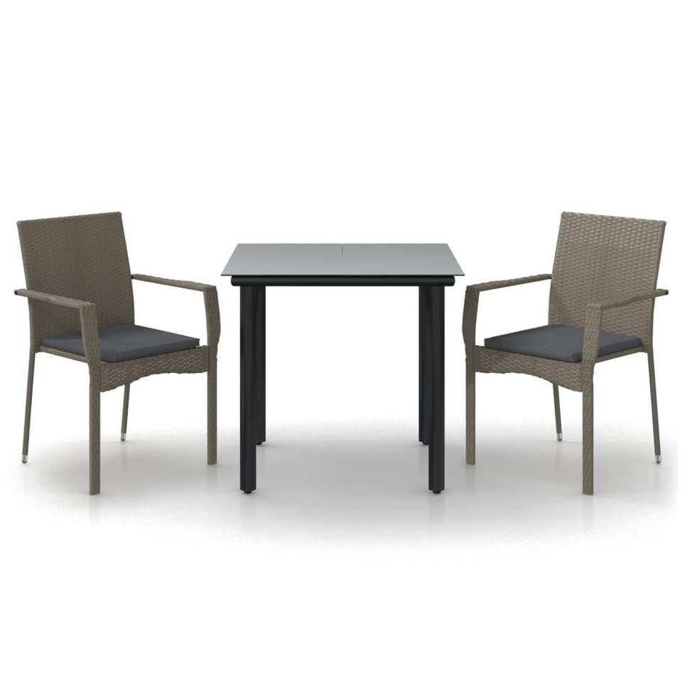 Set da Pranzo da Giardino in Rattan Grigio per 2 Persone, Resistente alle Intemperie, Design Contemporaneo con Struttura in Metallo