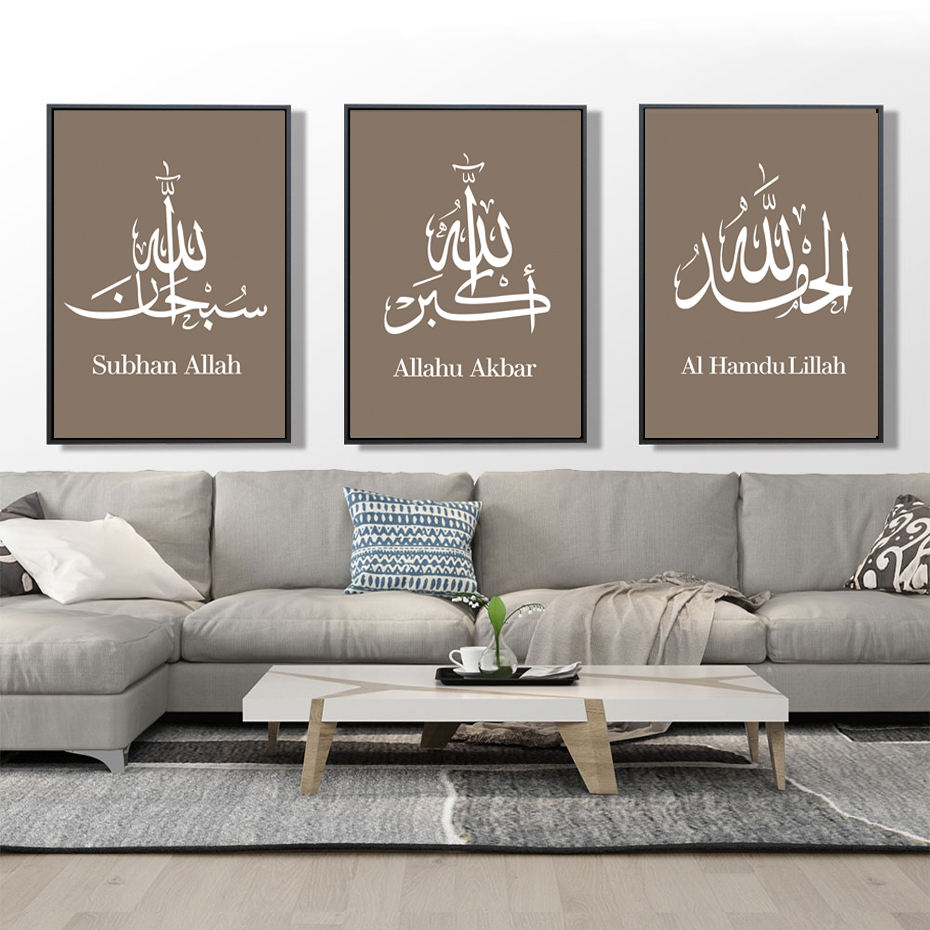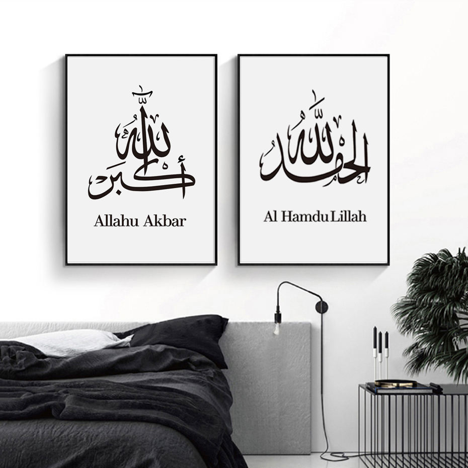 Stampa su Tela di Calligrafia Araba in Bianco e Nero, Quadro Islamico per Soggiorno