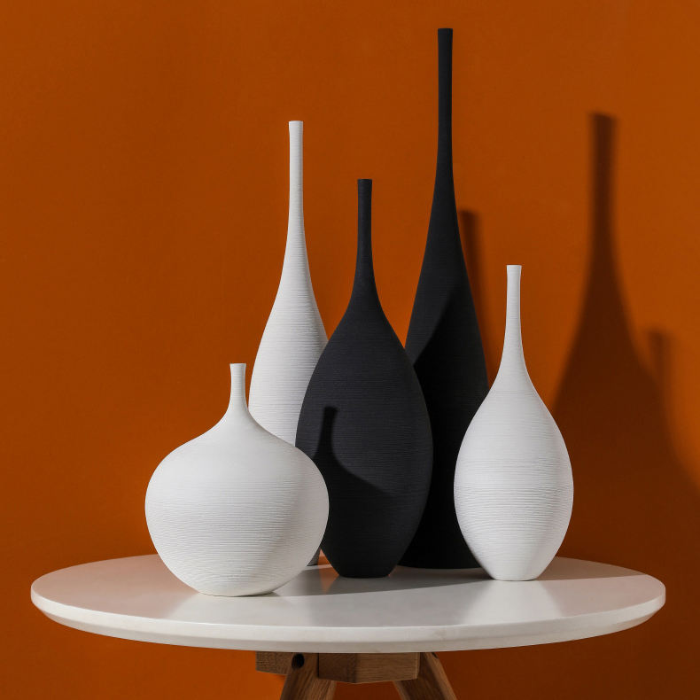 Black and White Creative Zen Living Room Tabletop Drawing Vintage Vases Decor Ceramic Irregular Porcelain Ceramic Vase