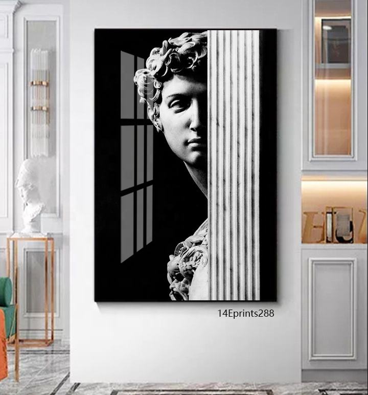 Black and White David Graffiti Street Pop Art Resin Acrylic Crystal Porcelain Painting Wall Art Metal Frame